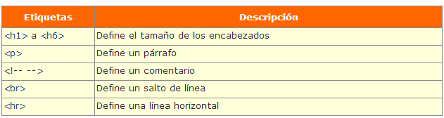 Las siguientes etiquetas HTML se utilizan para construir la estructura básica de una web: